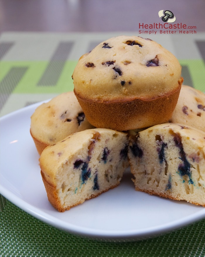 (made with whole wheat flour, frozen blueberries and low-fat yogurt) |
